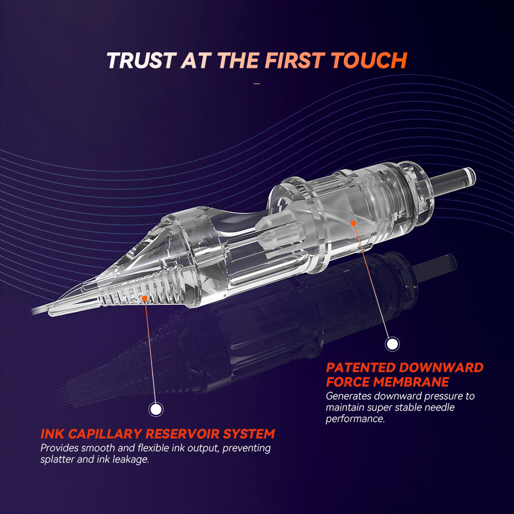 Our patented membrane features an innovative design with to-and-fro tension and downward force, offering superior stability for every session. It delivers constant accuracy and is trusted in our AWE and MAX series. Designed to prevent ink backflow, it protects your machine while keeping your work flawless.